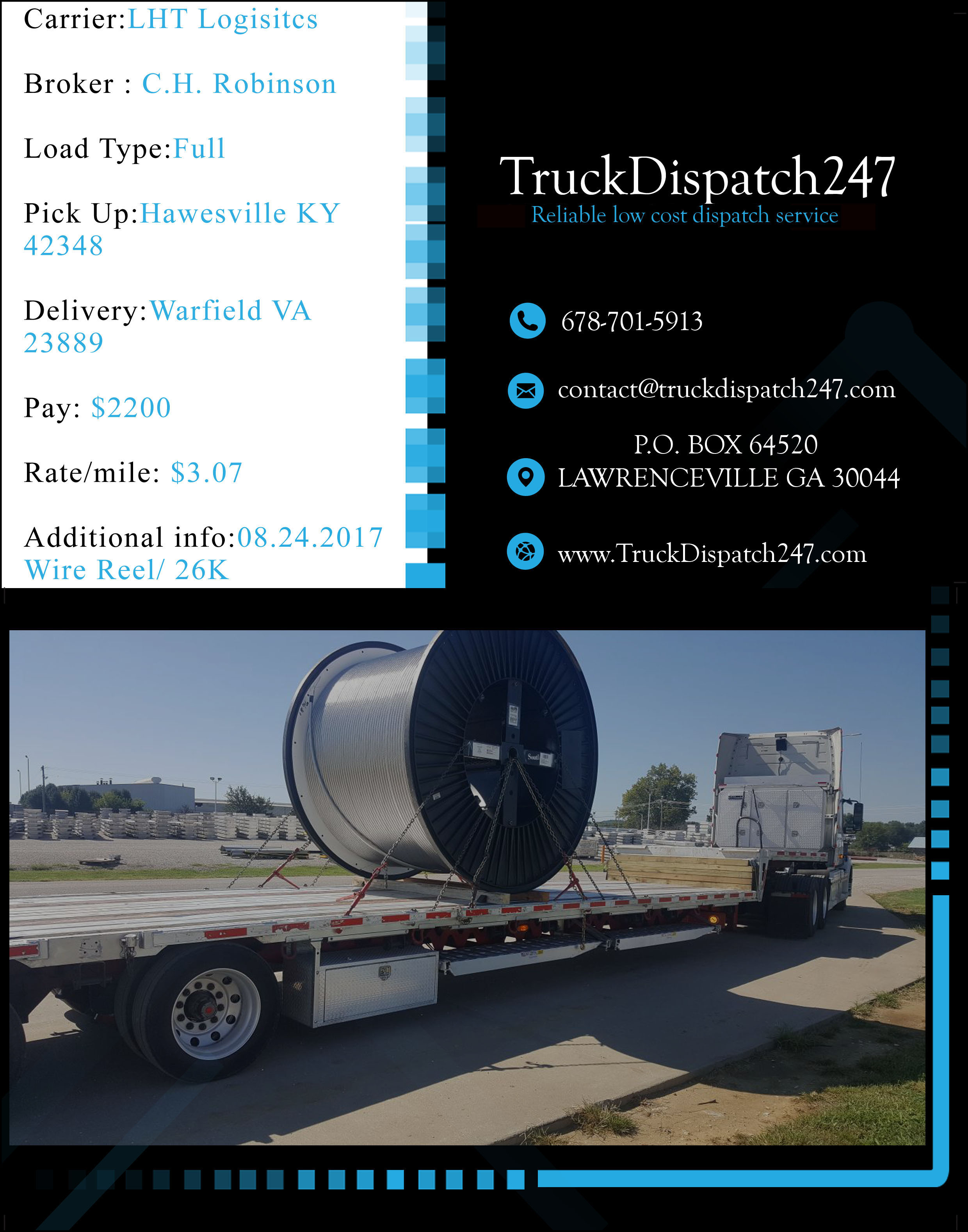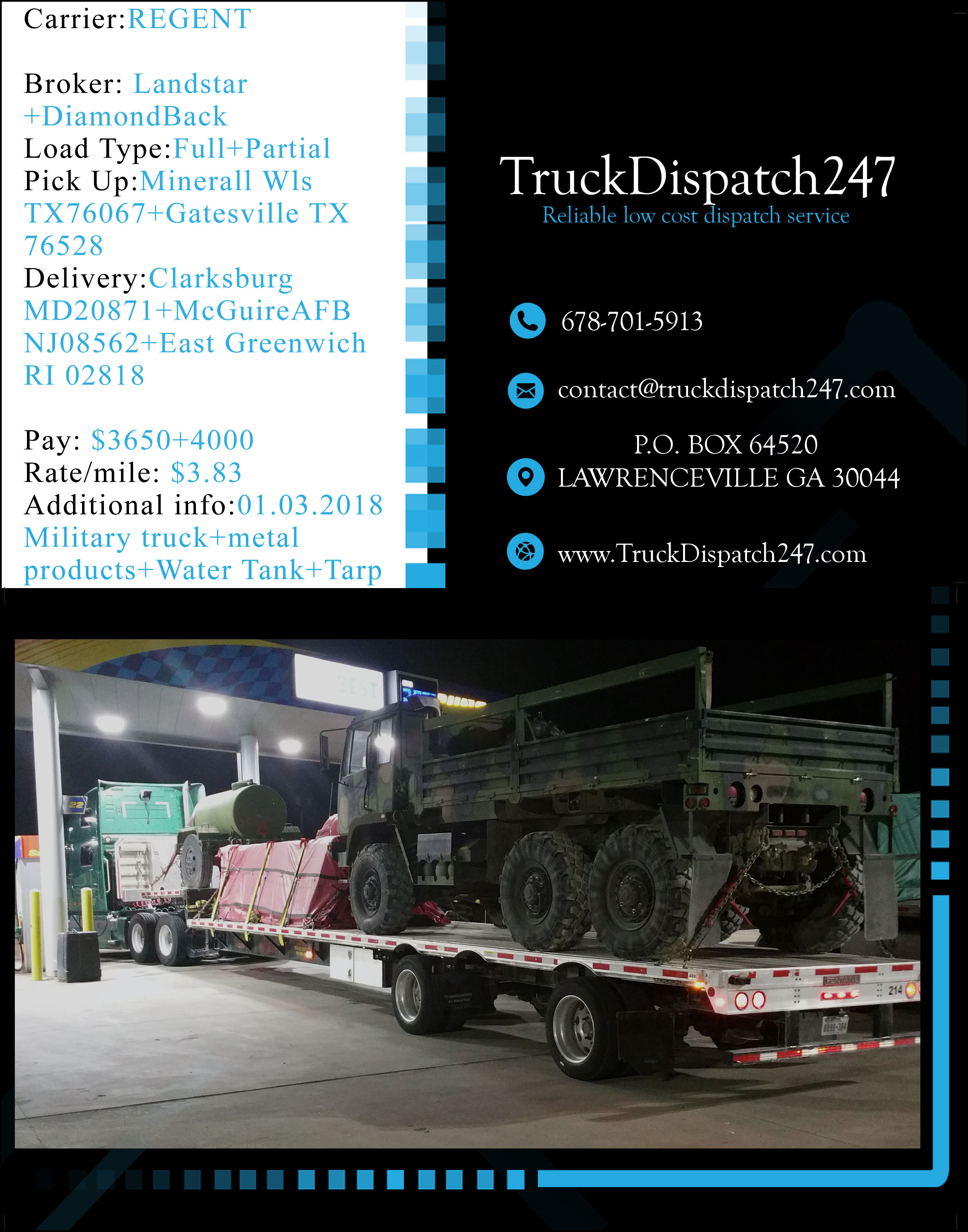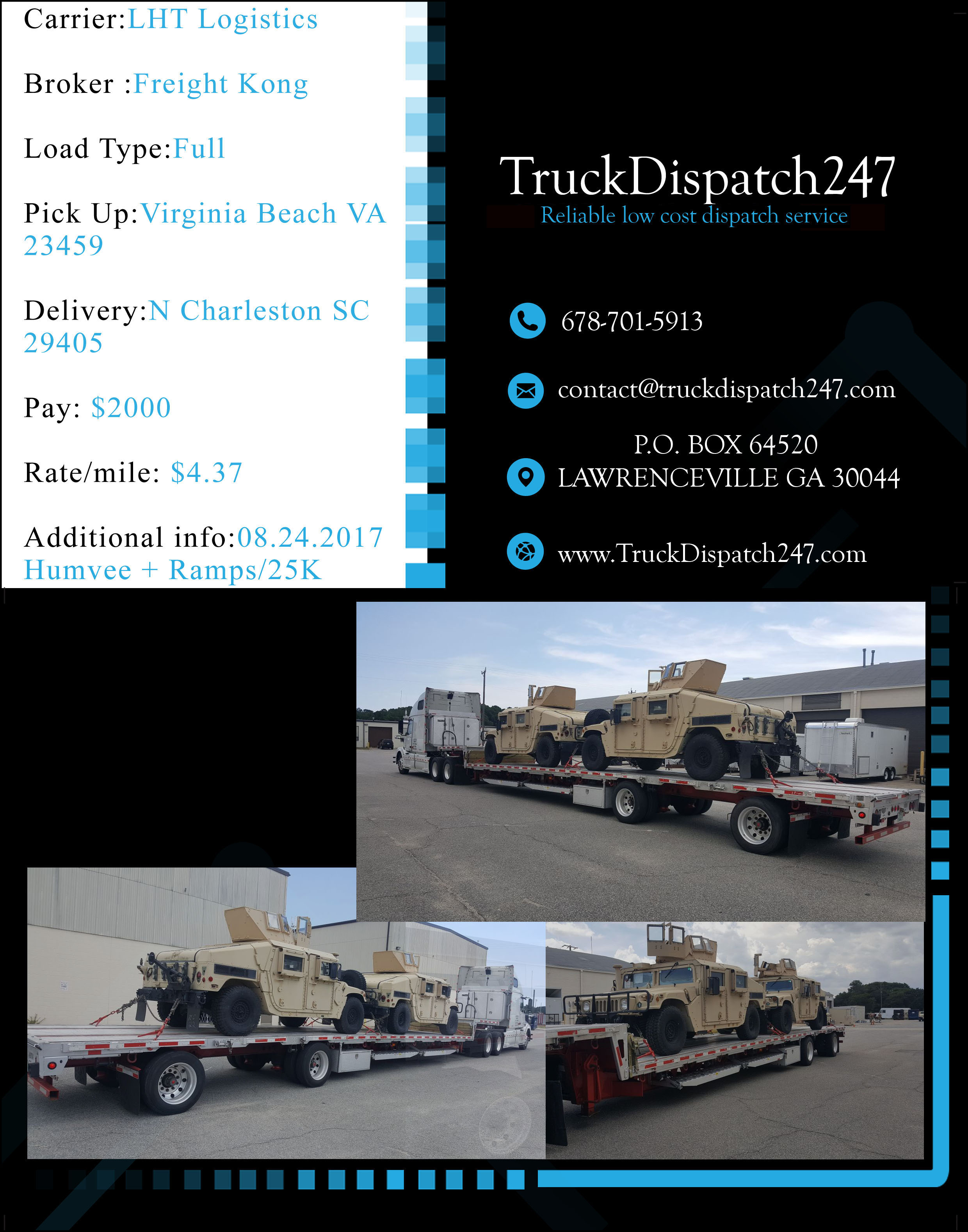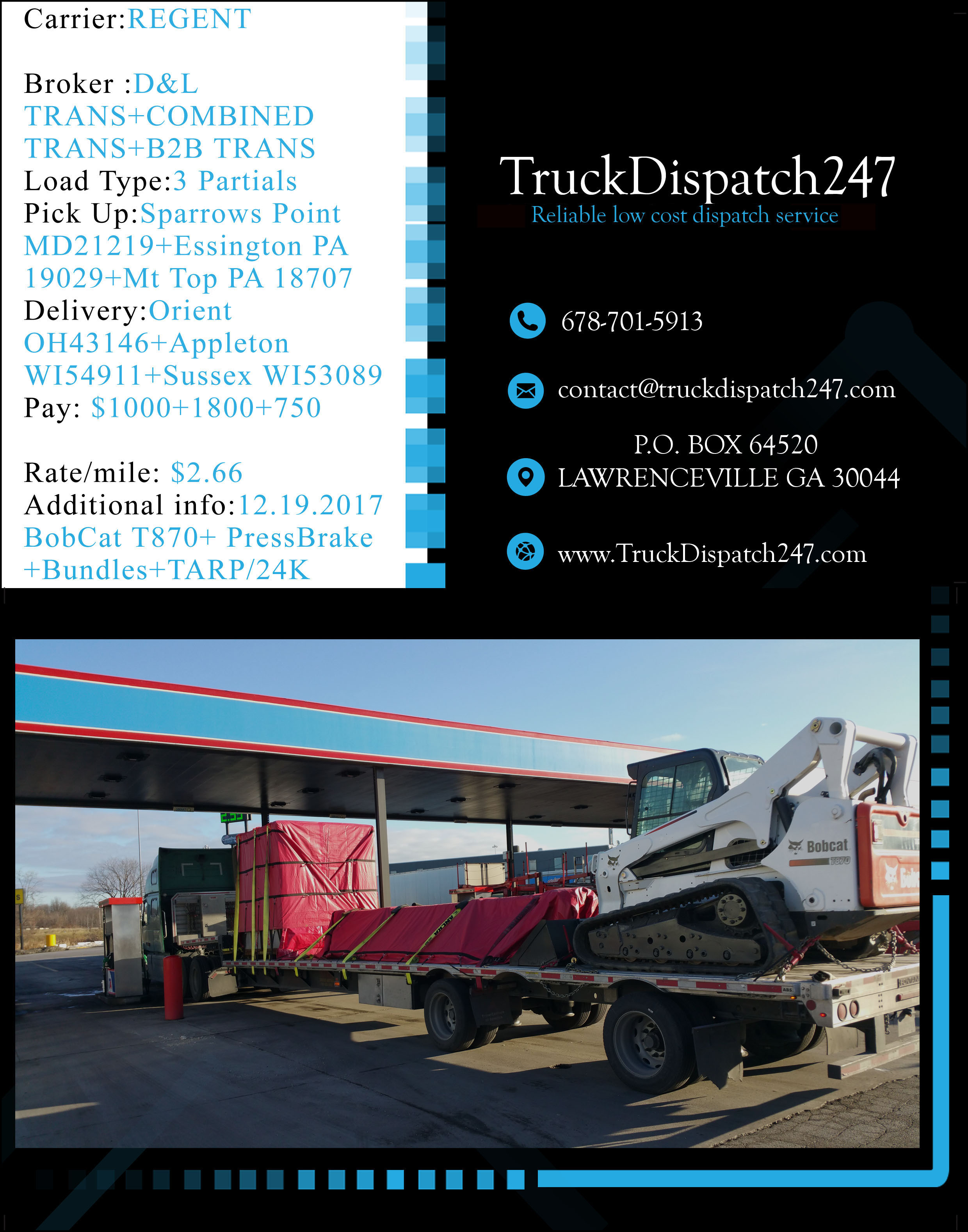 Here are some examples of great work we have provided in the last few months for our clients! All loads have been booked and verified by our professional dispatch team in close relation with the drivers, carefully , planning out the day or days for the maximum profit possible. Please take a look at the results of our work, all loads are backed up by rate cons if further proof is needed, please do not hesitate to contact us!!